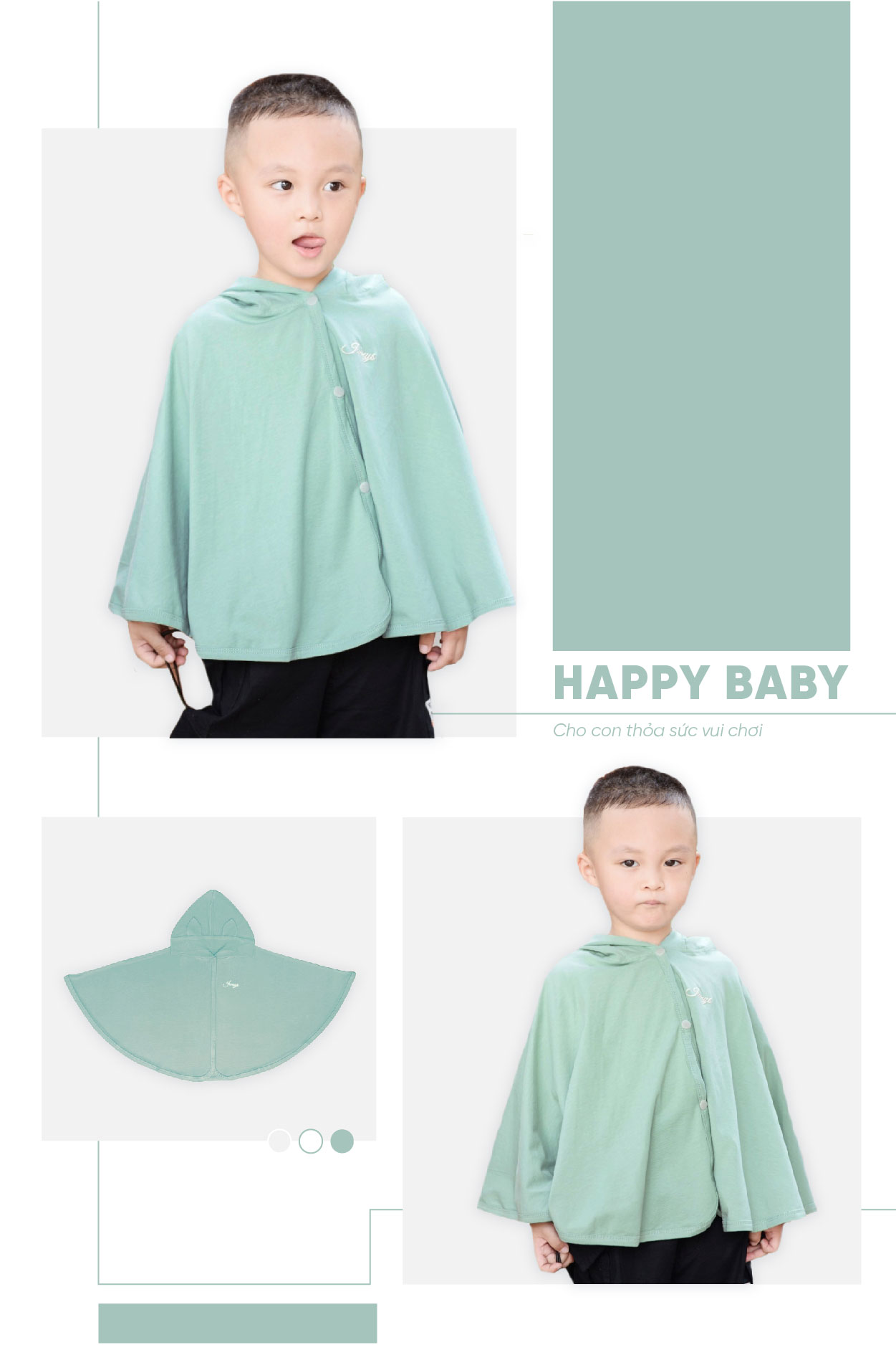 Kiểu dáng cánh dơi, thiết kế rộng thoáng đem lại sự thoải mái vận động cho bé yêu, đồng thời cũng giúp bé che nắng, che gió. Áo choàng chống nắng cho bé được thiết kế đường viền với độ dày phù hợp để dáng áo luôn được phẳng và có độ rũ nhất định. Từng đường may được thiết kế tỉ mỉ, tinh tế và đẹp mắt, giúp cho áo có độ bền hoàn hảo với thời gian. Chất liệu vải phẳng phiu mà mẹ thậm chí có thể cảm nhận thông qua hình ảnh, bé chắc chắn sẽ cực kì xinh xắn đáng yêu trong chiếc áo choàng này. Jumy’s tin rằng sự tỉ mỉ và chỉn chu trong từng sản phẩm sẽ làm ba mẹ yên tâm hơn khi tin tưởng lựa chọn nhà JUMY’S.