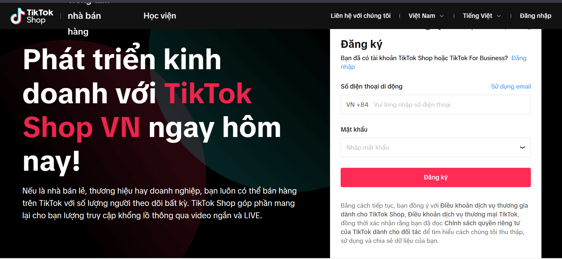 Để bắt đầu bán hàng, bạn cần đăng ký tài khoản TikTok Shop theo các bước sau: